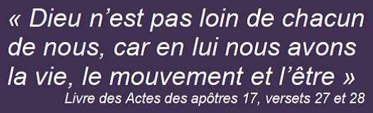 Dans le livre des Actes, Paul nous rappelle que tout ce qui existe a été créé par Dieu, l’Homme y compris. Et mieux encore, il nous dit : « Nous sommes de sa race. » L’Homme n’est donc pas sa propre origine, il n’est pas le tout et ne se suffit pas à lui-même. Il ne peut pas tout et, en même temps, il est de la même race que son Créateur qui, lui, peut tout, et donc s’imposer. Or, Dieu ne semble pas vouloir le faire. Le texte des Actes nous indique que Dieu a posé pour l’Homme le cadre de son habitation en termes de temps et d’espace et donc d’histoires dans lesquelles chacun consent à s’inscrire en naissant dans son humanité. Et Paul de rajouter que c’est à travers cela que l’Homme sera contraint de chercher Dieu et donc de découvrir ce qui le fait vivre réellement et pleinement. L’Homme trouve-t-il la vie dans la quête des biens de ce monde, dans l’or, le prestige, la beauté, la jeunesse, le savoir ? Or, toutes les fois que nous atteignons le but tant espéré, nous déchantons. C’est l’éternelle insatisfaction. Mais si l’humain s’arrête un peu et se demande ce qu’il cherche vraiment, autre chose peut advenir. Il lui est possible de se dégager de l’emprise de son histoire et de se voir dans la nudité de son être qui est comme Dieu.